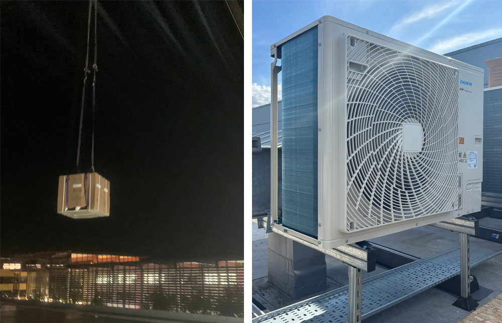 Phase 1 is a 10 week delivery window that will see the lower ground changing rooms, fantastic spin studio and the mezzanine floor installed for the the new studio and gym expansion. The evening’s crane lift, to place the condenser units on the roof, shows how our team carefully plan to ensure there is limited disruption not only to the leisure clients but also their neighbour West Herts College.